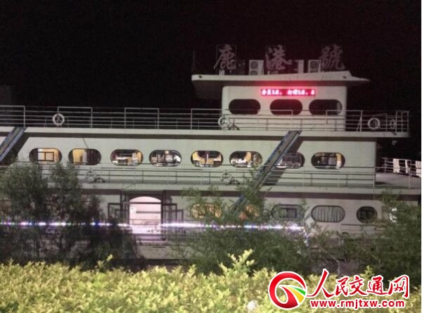 在反映人的带领下,记者来到了位于长垣县县城大约二十公里处、黄河主流域境内的芦岗乡段,发现黄河内停放着为鹿港号的船只,此船为三层,上面的液晶流动字幕打着鹿港号大酒店承接各种宴席及订餐电话,船只旁边另设了一个大约有五十平米的小房子,据反映人介绍,这是船上的后厨操作间,整个吃喝拉撒都在船上,紧靠船只进口处的河堤上,就是大型停车场。