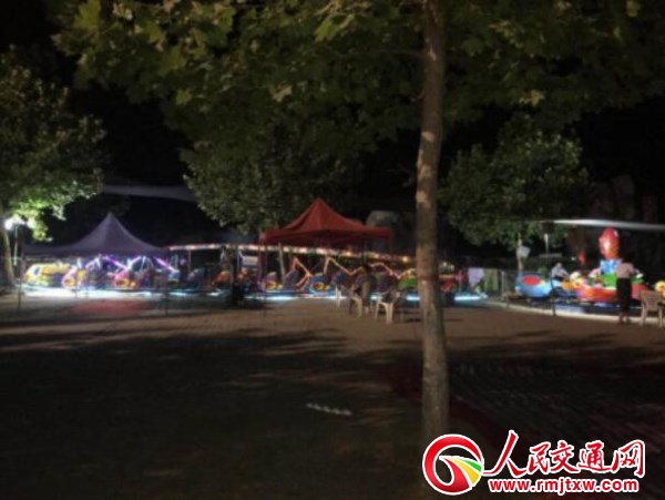 晚上八点左右,记者再次到了这里,远远望去,灯火通明,迷幻灯闪烁不停,鹿港号船只上的包间内窗帘紧闭,停车场上停满了小车,记者登上船只时,发现一名服务员正在冲洗过道,污水直接流入了黄河。在夜市的烧烤摊上人来人往,各种儿童娱乐设施灯光闪烁,唱着儿歌不停的旋转着,看上去整个场景确实热闹非凡,但因消费者所产生的各种垃圾,在黄河滩上也是随处可见。