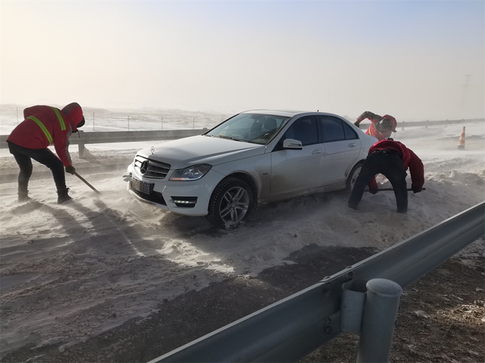 时间:2023-12-19 来源: 新疆维吾尔自治区交通运输厅 作者:佚名近日,交投集团天北公司塔城养护中心额敏管理部员工正在高速公路开展巡道作业时,发现G3015线奎塔高速K306处额敏收费站匝道有一车辆被突发的风吹雪围困,无法继续行进,5名员工迅速开展紧急营救,。