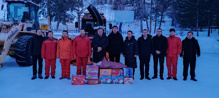 阿勒泰地区近日发生强寒潮天气,14日哈巴河县气温降至零下27度左右,傍晚调研组一行还来到了分局距离县城153公里的喀纳斯除雪保通点,看望慰问驻扎在这里的队员们。调研组领导亲切地与大家一一握手,询问他们近期的工作生活情况,对他们“舍小家、为大家”、坚守岗位,面对降雪、寒潮天气,不畏艰难、无私奉献表示感谢,叮嘱他们注意保暖及行车安全。