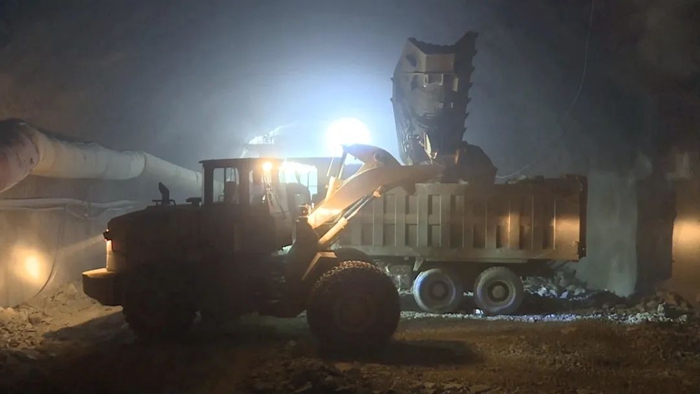 在伊犁哈萨克自治州尼勒克县的G577精伊公路项目全线重点控制性工程——北天山隧道内部,建设者们正在紧张施工,隧道各项施工作业有序衔接……