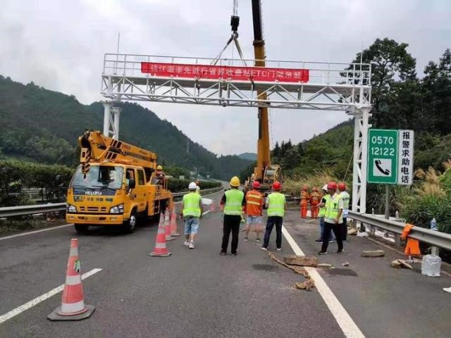 2019年,衢州地区将完成82座ETC门架的吊装,其中衢黄段的门架数量为23座,根据省交通运输厅和浙江省交通集团的总体部署要求,6月11日衢黄高速率先启动门架基础施工建设,克服任务重、时间紧、雨水多等困难,仅一个月时间就完成了衢黄段27处的基础浇筑。此次吊装工作的完成也标志着钱江源主线人工收费所拆除工作取得了实质性的进展。