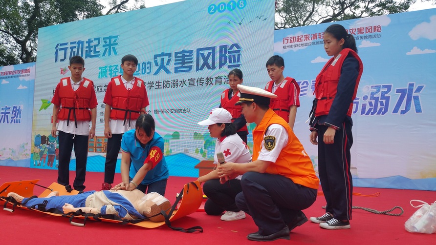 梧州市学校地震应急疏散演练暨学生防溺水宣传