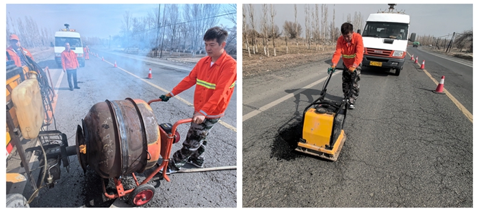 时间:2024-04-02 来源: 新疆维吾尔自治区交通运输厅 作者:佚名近日,泉水地公路分局结合春融路况恢复和路域环境整治,利用创新成果,快速修复路面病害,推进养护作业提质增效。