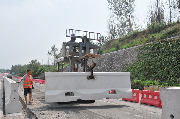 一标段负责人刘芳芳介绍说,“这次路面施工进行的是沥青玛蹄脂碎石罩面,提高路面抗滑性能;防水粘结层也由原来的普通纤维升级为胶粉纤维,这种沥青路面高温抗车辙、低温抗开裂,具有良好的抗水损害能力。二标段负责人高华介绍,“现在安装的中央隔离墩升级为SA等级,隔离墩每个长四米,达到5吨重,相当于原来的两个到三个,提高了防撞等级,减少次生事故的发生,大大提升了车辆通行的安全性。”