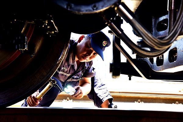 [重庆]高温“烤”验下的重庆铁路“车辆医生”