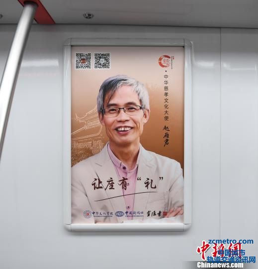 在中华慈孝地铁专列上,记者观察到,该专列共有6节车厢,每节车厢的玻璃门、车窗处,都贴有2019第五届中华慈孝文化节的艺术元素。车厢内,悬挂着赵雁君、赵文卓、叶璇和朱启南四位中华文化慈孝大使的海报,让座有礼四个大字格外显眼。