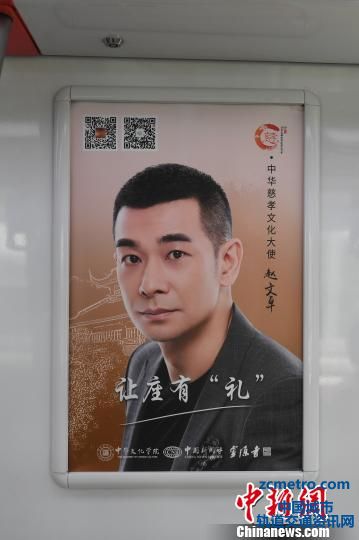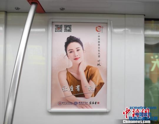 车厢内悬挂着中华文化慈孝大使海报。 王刚 摄
