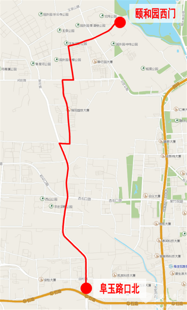 首末站:颐和园西门-阜玉路口北