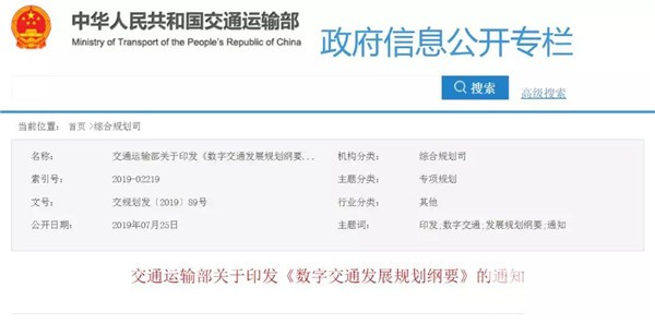 时间:2019-09-03 来源: 作者:交通运输部关于印发《数字交通发展规划纲要》的通知