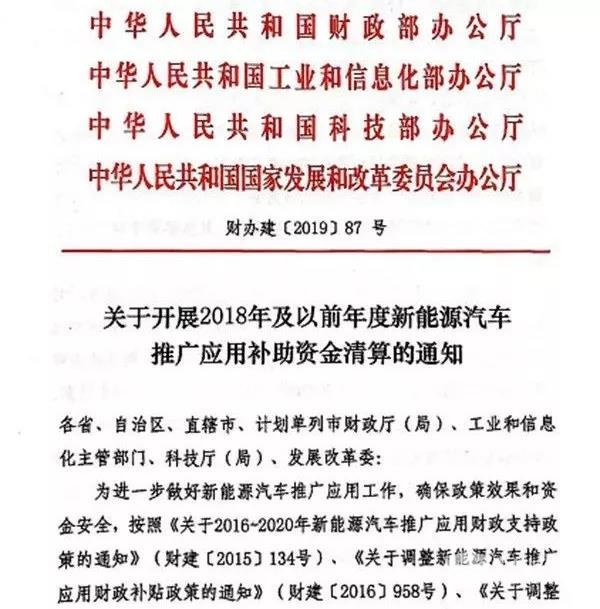 2018年及以前年度新能源汽车补贴清算工作启动