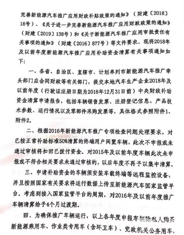 此次新能源汽车补助资金申报材料截止日期为2019年9月30日,2016年及以前年度推广车辆则延长到2020年1月31日。