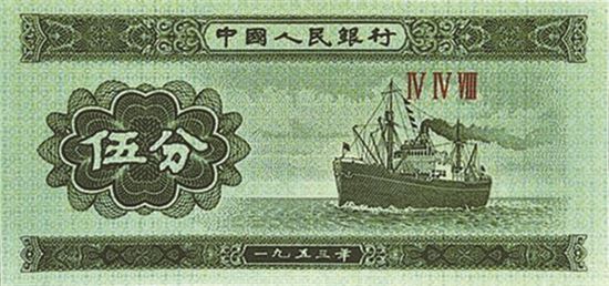 高举义旗的“海辽”轮荣登1953年版五分纸币。资料片