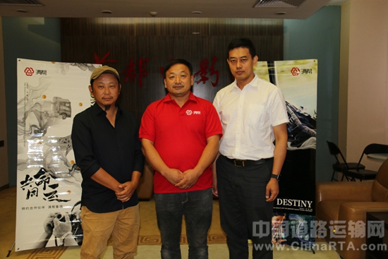左一导演刘畅、中间司机吴英华、右一满帮副总裁徐强