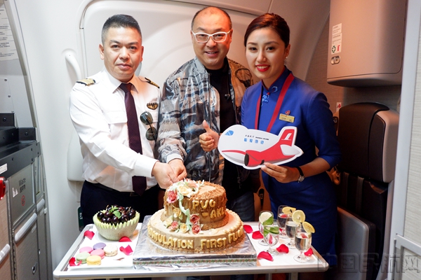 邀请旅客分享航班纪念蛋糕(上航供图)