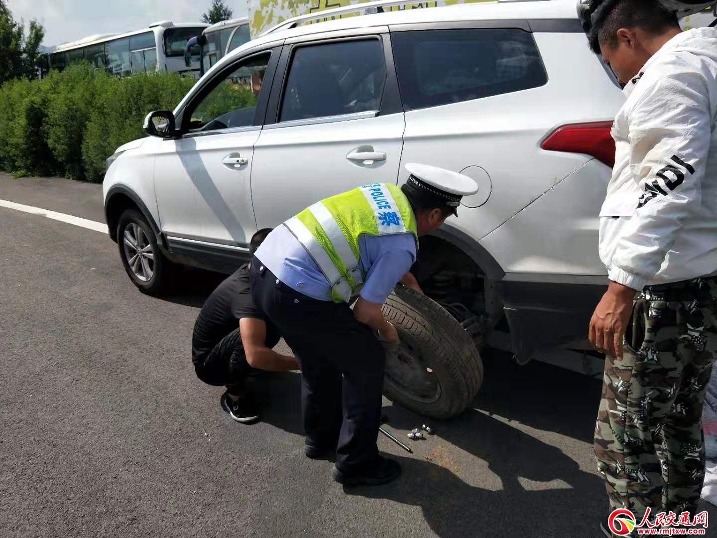 时间:2019-09-03 来源: 作者:人民交通讯:河北省公安厅高速交警总队怀安大队民警在东阳河主线执勤时,发现一辆白色轿车停在路边,车后有人躺着,执勤民警上前进行了解询问。经询问得知该车轮胎在行驶过程中突然爆胎,驾驶人表示由于自己不经常开车,所以不怎么会更换轮胎,此时正心急如焚。当民警得知车内有千斤顶等换胎工具时,在不影响车辆正常通行的情况下,帮助驾驶人为该车更换了轮胎,驾驶人对民警的及时救助连声道谢,民警也对驾驶人进行了安全教育。
