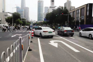 在南京路与万全道交口由东向西方向共有五条车道进入路口,其中有两条车道为左转专用车道。交警和平支队充分利用这两条左转专用车道所对应的路口西侧的“空余”车道,将其中一条设置为由西向东方向的掉头专用车道。形成一条专用掉头车道、三条直行车道、一条直行右转车道的交通组织格局,较好满足过往通行交通需求,提高道路交通使用效率。