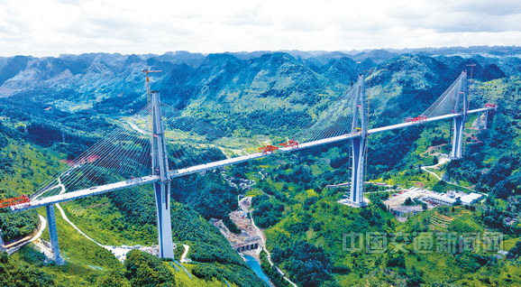 日前,横跨贵州省黔南布依族苗族自治州平塘县通州镇漕渡河河谷的平塘大桥顺利合龙,为大桥今年年底建成通车奠定了坚实基础。 平塘大桥全长约2.1公里,桥面宽24.5米,设计时速80公里。大桥通车后,平罗高速公路将全线贯通,可为沿线地区脱贫攻坚和经济发展注入更多活力。