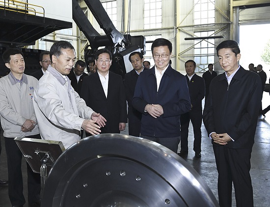太原重型机械集团有限责任公司是新中国自行设计建设的第一座重型机械厂。韩正来到这里,考察矿山挖掘机、高铁轮对等先进机械研发生产情况。韩正强调,重型机械是国之重器,是先进制造业的重要支撑,要加快产品智能化步伐,提高生产线和生产设备的国产化率,实现精密零部件加工的技术突破,积极拓展“一带一路”沿线国家市场,加强人才队伍建设,打造具有国际竞争力的高端装备制造产业。韩正走进生产车间,勉励一线工人抓住转型升级机遇,推动企业加快发展,实现个人价值。
