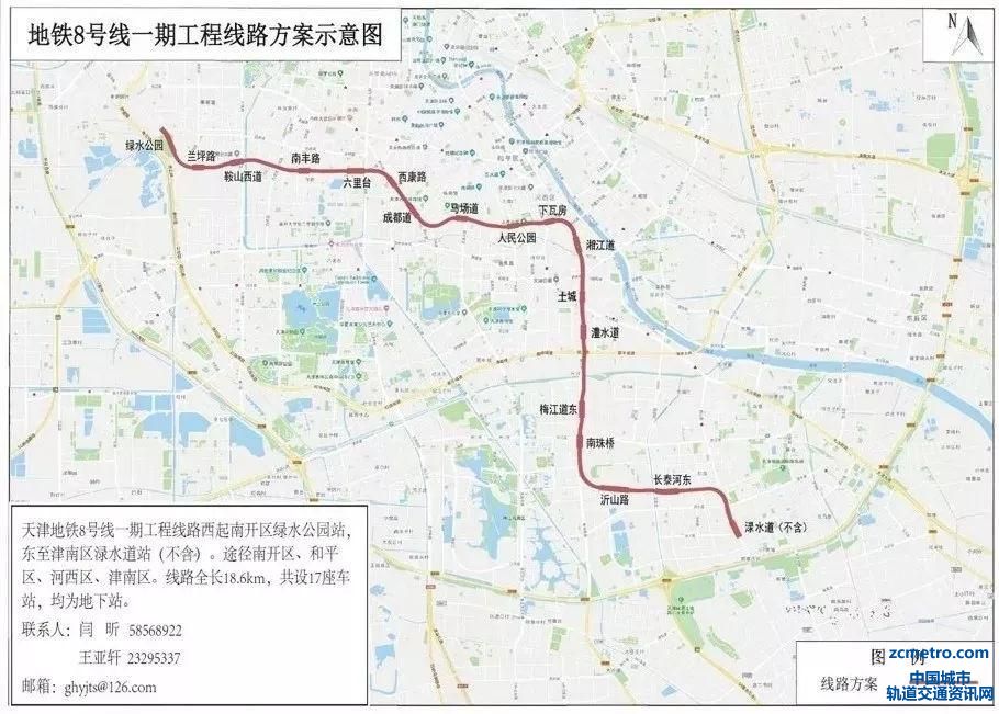 天津地铁8号线一期工程西起南开区绿水公园站,南至津南区渌水道站(不含),是中心城区南部骨干线。8号线项目全线由绿水公园站至咸水沽西站。