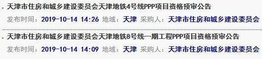 时间:2019-10-24 来源: 作者:昨天(10月14日),天津地铁4号线PPP项目、天津地铁8号线一期工程PPP项目发布资格预审公告,其中披露了线路走向、车站数以及计划开通运营时...