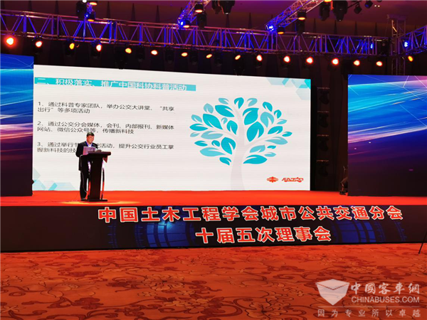 中国土木工程学会是全国土木工程科学技术工作者的学术性社会团体,是中国科学技术协会的组成部分,公交分会作为学会的分支机构,40年来积极推动中国城市公共交通事业的发展,在城市公交快速发展的过程当中做出了大量的工作。会上,中国土木工程学会理事长郭允冲对公交分会成立40年间为城市公共交通所作出的努力给予了充分肯定。