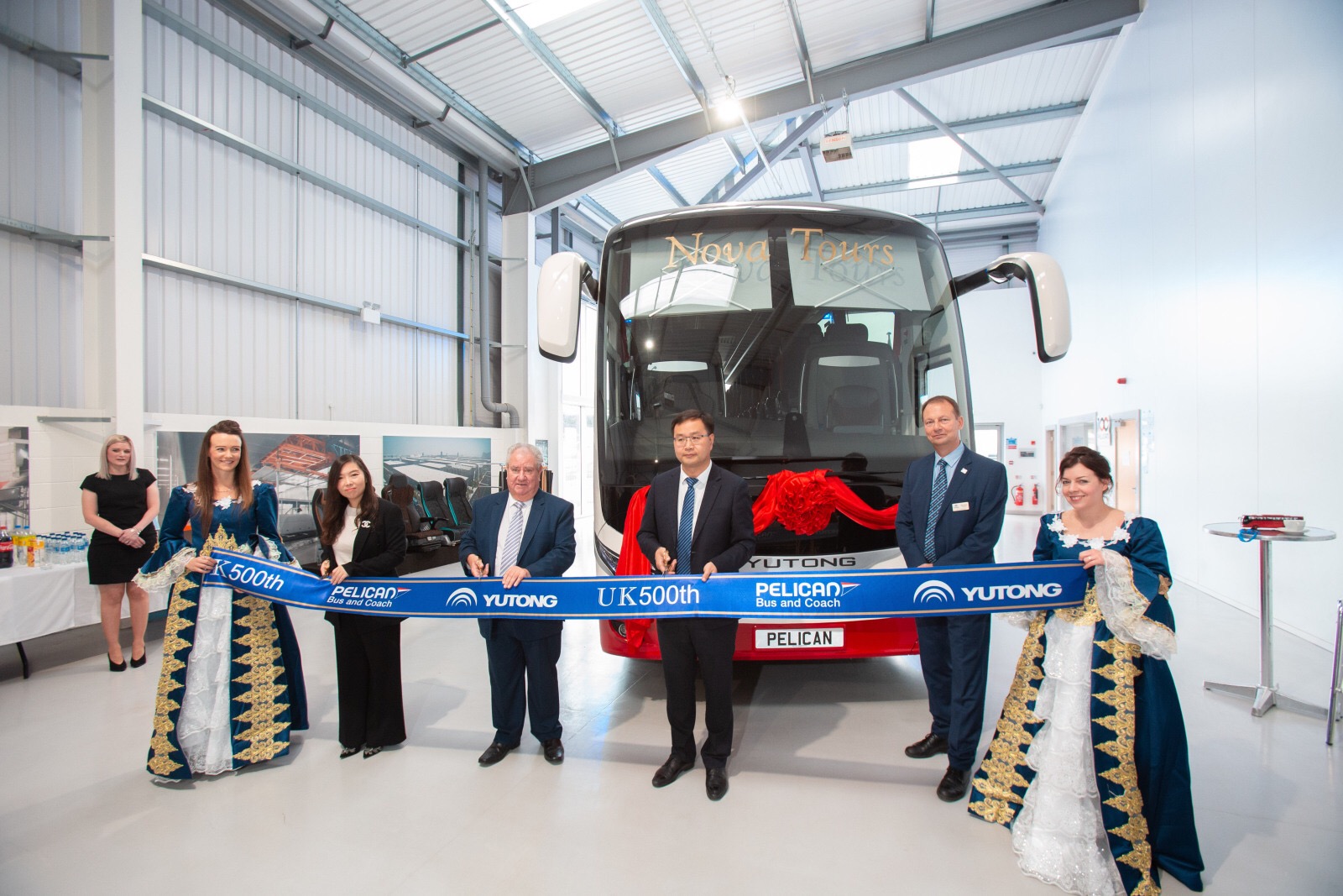 在活动现场,第500辆购买企业Nova Tour总经理David Sheriff、Go North East公司总经理Martijn Gilbert、Welshs’s coaches总经理John Welsh、宇通英国合作伙伴Pelicanengineering总经理Richaid Crump、宇通集团品牌副总监蒋冰、宇通西欧大区经理李克杰等人出席仪式,共同见证宇通客车在英国市场里程碑式的成果。