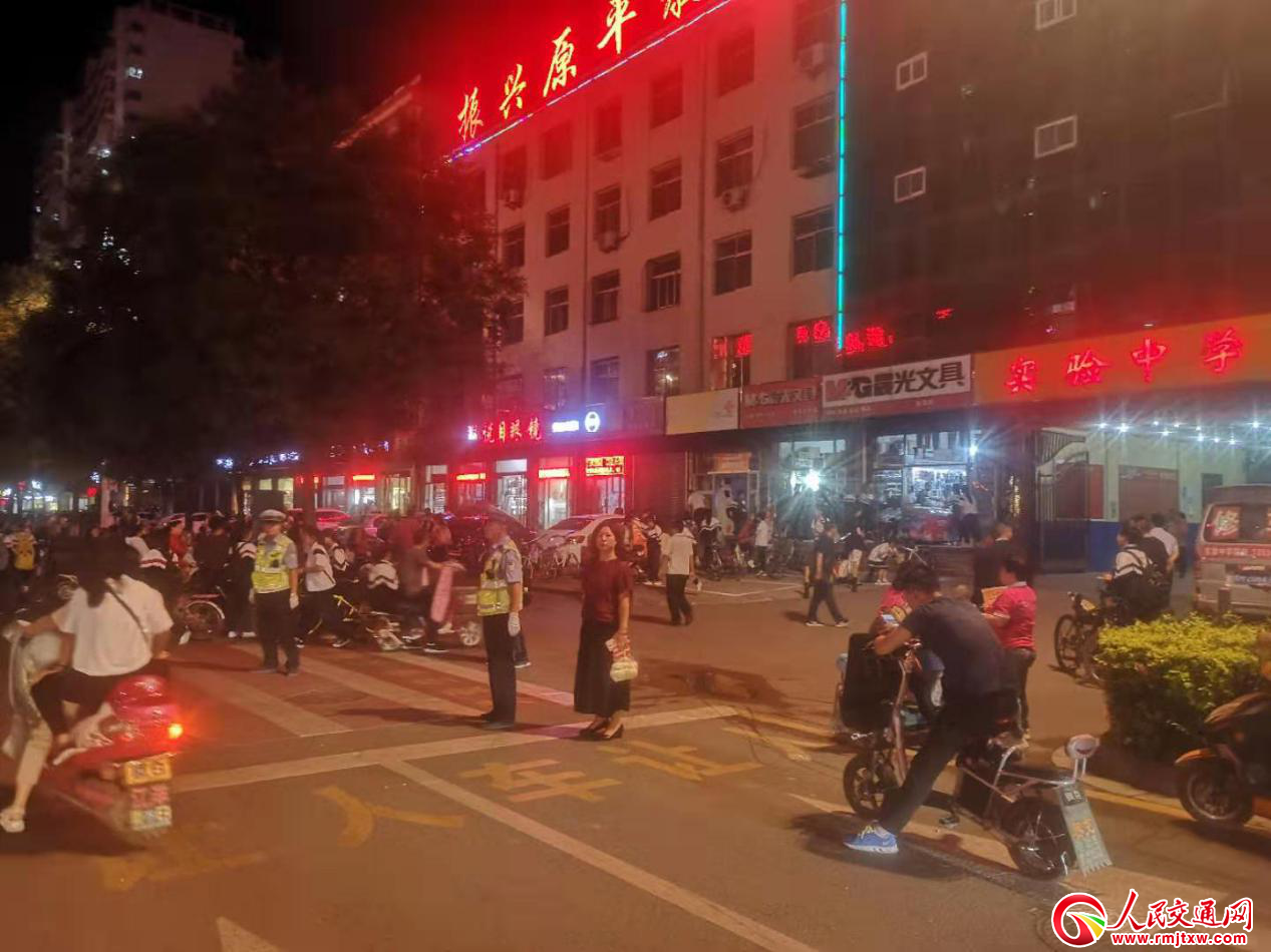 人民交通讯:2019年9月2日,秋季开学的第一天,实达中学如往常开学一样,学子们络绎不绝的走进校园,家长们则是将车辆停放在临时停车点,搬上孩子们的行李紧跟着大步迈向校园。校园周边一个个交通警察正在紧张的指挥疏导着交通,尽管车流量、人流量大,但是校园周边的交通井然有序,丝毫没有因开学造成道路拥堵和混乱。这样的景象不单单是这一所学校,城区内实验中学、四中、一小、三小、四小等几所在千人以上学校周边均是如此。