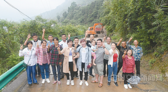 7月21日傍晚时分,湖北宜昌长阳土家族自治县东村附近的324省道临时便道终于抢通了。众多在现场守候的村民激动地请记者帮忙拍张合影。对着镜头,他们的脸上洋溢着对交通人的感激(如图)。