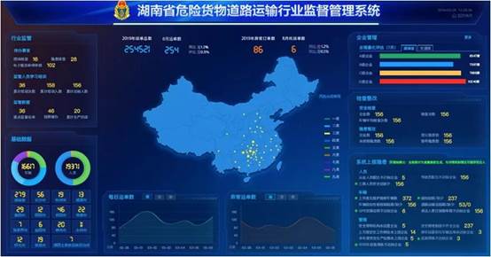 目前,湖南省从事危货运输的企业共有308家,车辆共有16319辆,驾驶员共有20476人。2018年以来,湖南省危险货物道路运输信息化建设致力于筑牢安全管理全要素的基石,强化安全生产管理的静态数据和运输生产过程的动态数据深度融合;致力于有效解决安全与业务、安全与效益、安全责任主体与监管责任主体的关系;致力于推动四个方式的“转变”,即推动行业管理方式转变,实现“精准监管、专业监管”推动行业协作模式转变,实现跨区域、跨部门业务协同调动;推动企业安全管理向信息化和标准化转变,实现安全管理水平提升;推动市场监管模式转变,完善事中、事后监管手段。