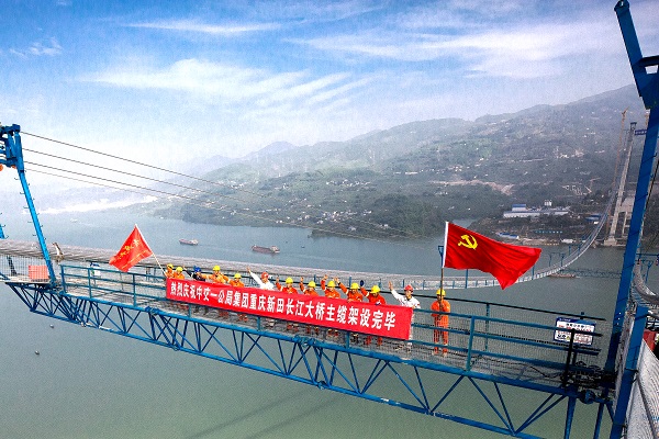 万州新田长江大桥全长1770米,是重庆市和三峡库区目前在建最大跨径桥梁,主跨1020米,一跨过江,为钢箱梁悬索桥,于2019年3月正式开工建设。该桥作为G5512恩广高速公路万州境内新田至高峰段的重点控制性工程,预计2022年建成通车。届时,连接G42沪蓉高速梁平至万州段、G69银百高速忠县至万州段,为“桥都”重庆再添跨江大通道。(重庆万州高速公路公司 陈洪胜 张玉佰)