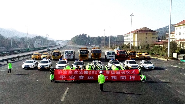 深化“一路两省(市)五方”联勤联动机制,打造健康、畅通、平安、暖心、便捷“五个春运”。1月28日,G50沪渝高速渝鄂省界春运交通安全联合执法、保畅工作启动仪式在省界站白羊塘服务区举行。