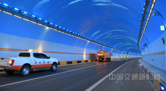 近日,延崇高速公路河北段举行冬季体育系列测试活动,按照“中小雪不封路”的要求做好雪天应急保畅。延崇高速公路筹建处大海陀工区全员出动,确保车道顺畅通行。延崇高速公路怀来北隧道所、赤城隧道所加强全路段监控和机电设备日常维护,多部门联动,有效提升恶劣天气下的路况预判和道路通行能力。图为车辆在金家庄螺旋隧道内清扫作业。