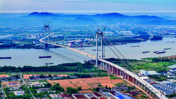 【江苏经济报】龙潭长江大桥主桥已合龙,北引桥已完成桥面板架设
