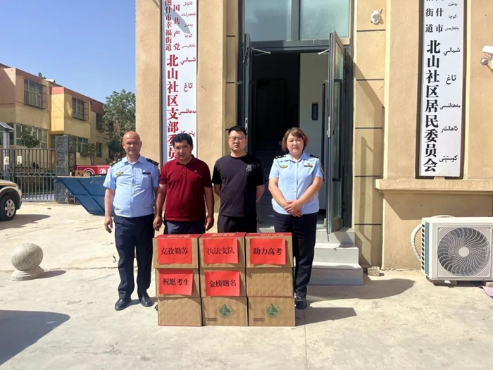 克孜勒苏执法支队为传递爱心,为梦想点赞,在高考期间爱心送水,助力学子旗开得胜金榜题名。