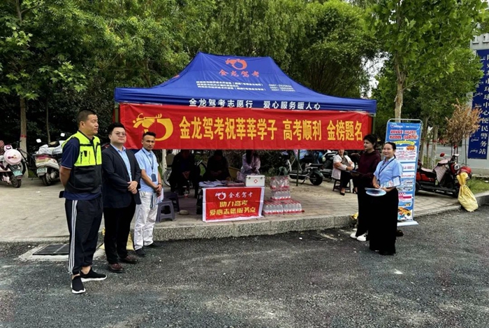 阿克苏地区金龙汽车驾驶员培训有限责任公司在考点为广大学生及家长提供休息区域及应急药品、矿泉水等服务,并现场为高考学生们免费提供心理咨询辅导缓解压力。