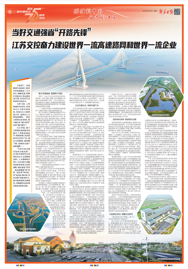 【新华日报】当好交通强省“开路先锋” 江苏交控奋力建设世界一流高速路网和世界一流企业