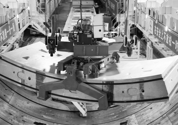 目前,“领航号”盾构机已越过长江北岸大堤进入长江1108米,每掘进2米即完成一环管片拼装,建成后的隧道浑然一体。
