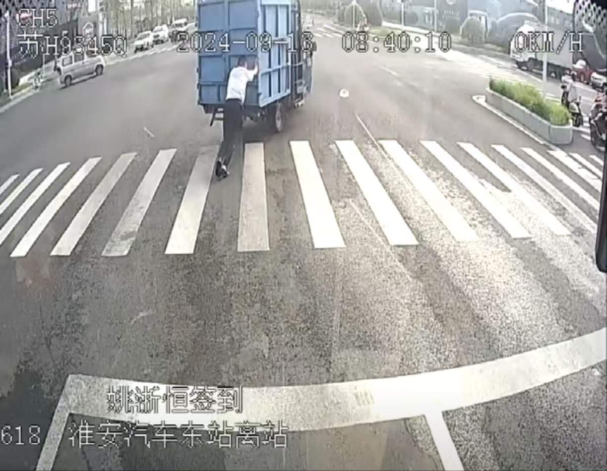 时间:2024-10-23 来源: 江苏省交通运输厅 作者:佚名9月13日8点40分,淮安公交高铁东站分公司618路驾驶员姚浙恒驾驶公交车行驶至淮安汽车东站红绿灯路口时,发现一辆环卫三轮车在路口处抛锚。为了不阻碍交通,车上的环卫工人正试图将车推到路边,奈何车辆沉重,而且自己一个人又难以控制方向,来往的车流让这位环卫工很是焦急。