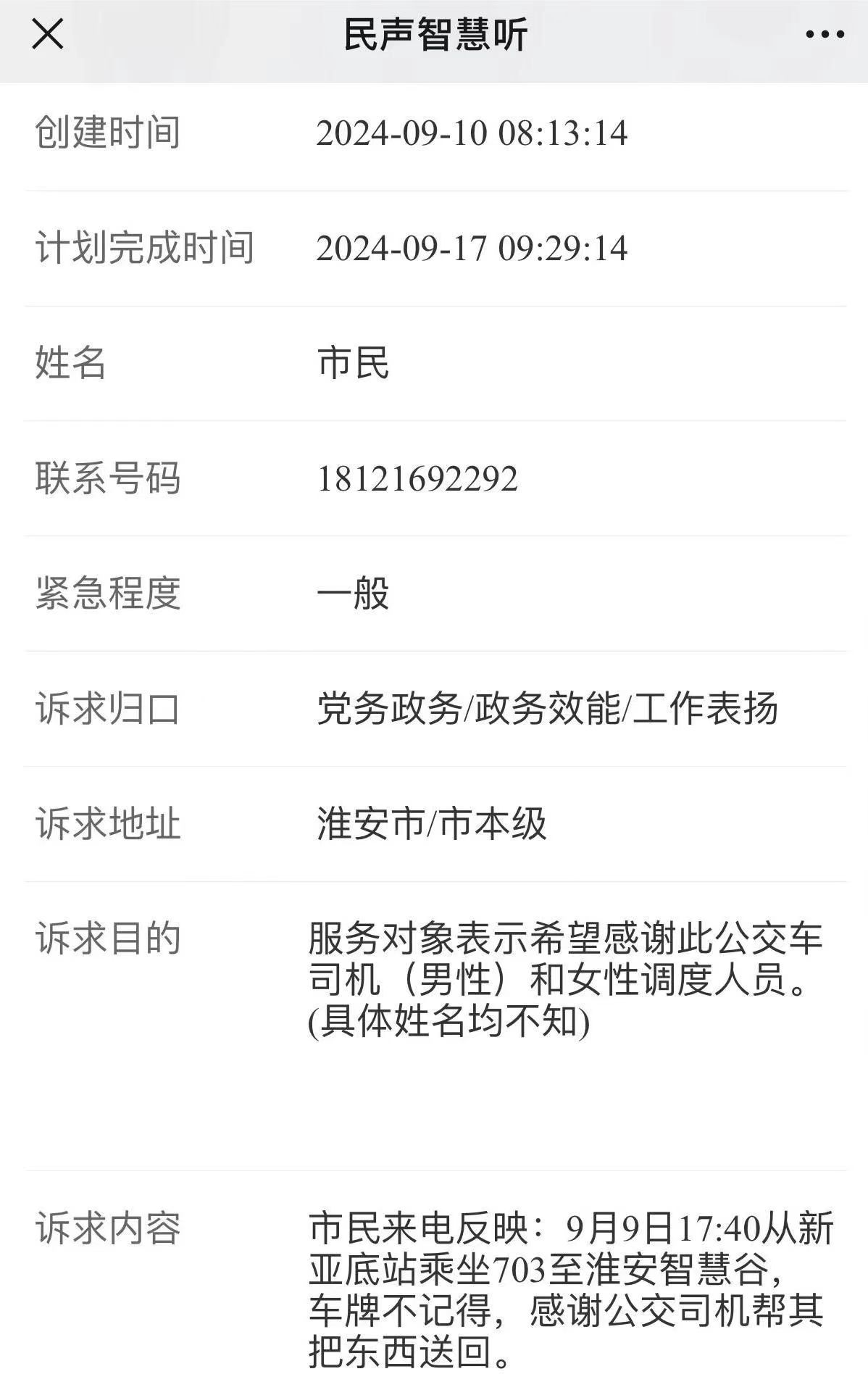淮安公交:乘客遗落重要文件,公交驾驶员捡到及时归还