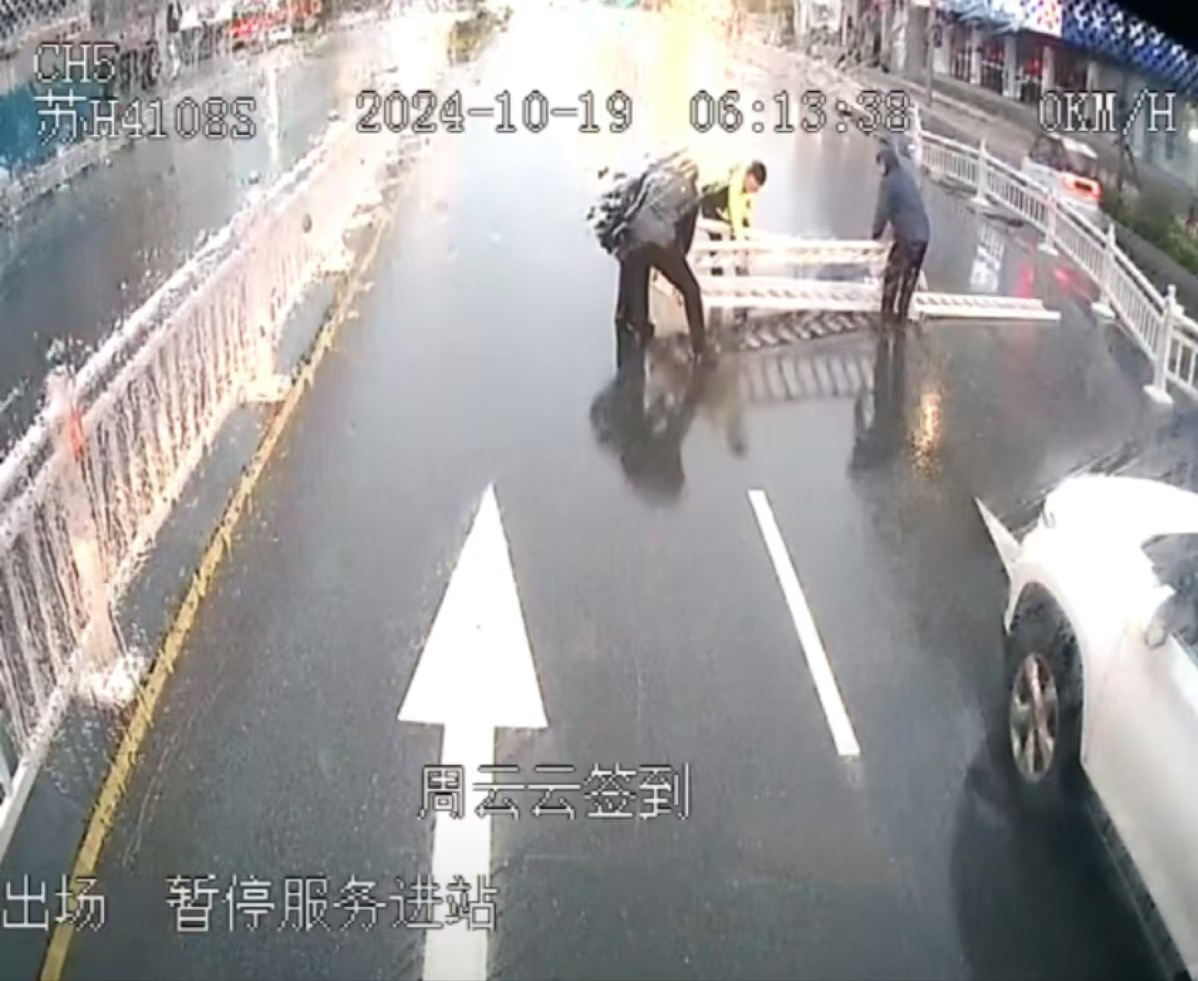 淮安公交:护栏倾倒横在路中间,“幸福摆渡人”及时进行清除