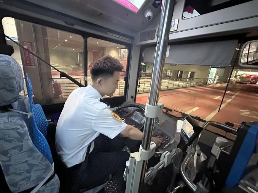清晨,公交场站还未被第一缕阳光洒满,唤醒城市的“幸福摆渡人”就已经开始各项安全检查,场区内充满了忙碌有序的身影。他们有序开展酒精、血压等岗前检测,确保以最佳状态迎接新一天的工作。在通过岗前检测后,便立即开始车辆的出场前安全检查,他们仔细查看车辆的轮胎、灯光、刹车等关键部位,确保车辆处于最佳状态,并对车厢内的设施设备进行检查和清洁,为乘客提供一个整洁、舒适的乘车环境。