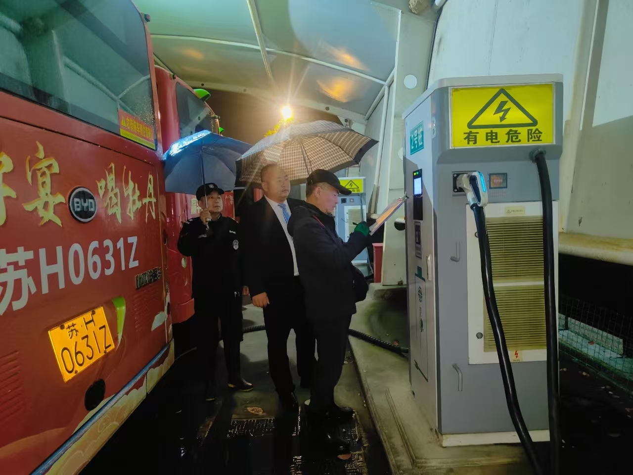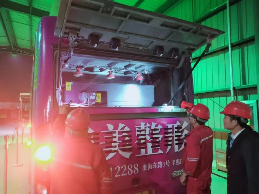 除了充电工作外,场区的值班人员也在履行安全职责。他们身着醒目的反光背心,手持电筒,穿梭在场站之内,认真检查车辆的停放情况,查看场站内的消防设施是否完好,安全出口等是否畅通。夜色中,他们的身影忙碌而坚定,犹如一道道坚实的安全屏障,守护着场区夜晚的安全防线。
