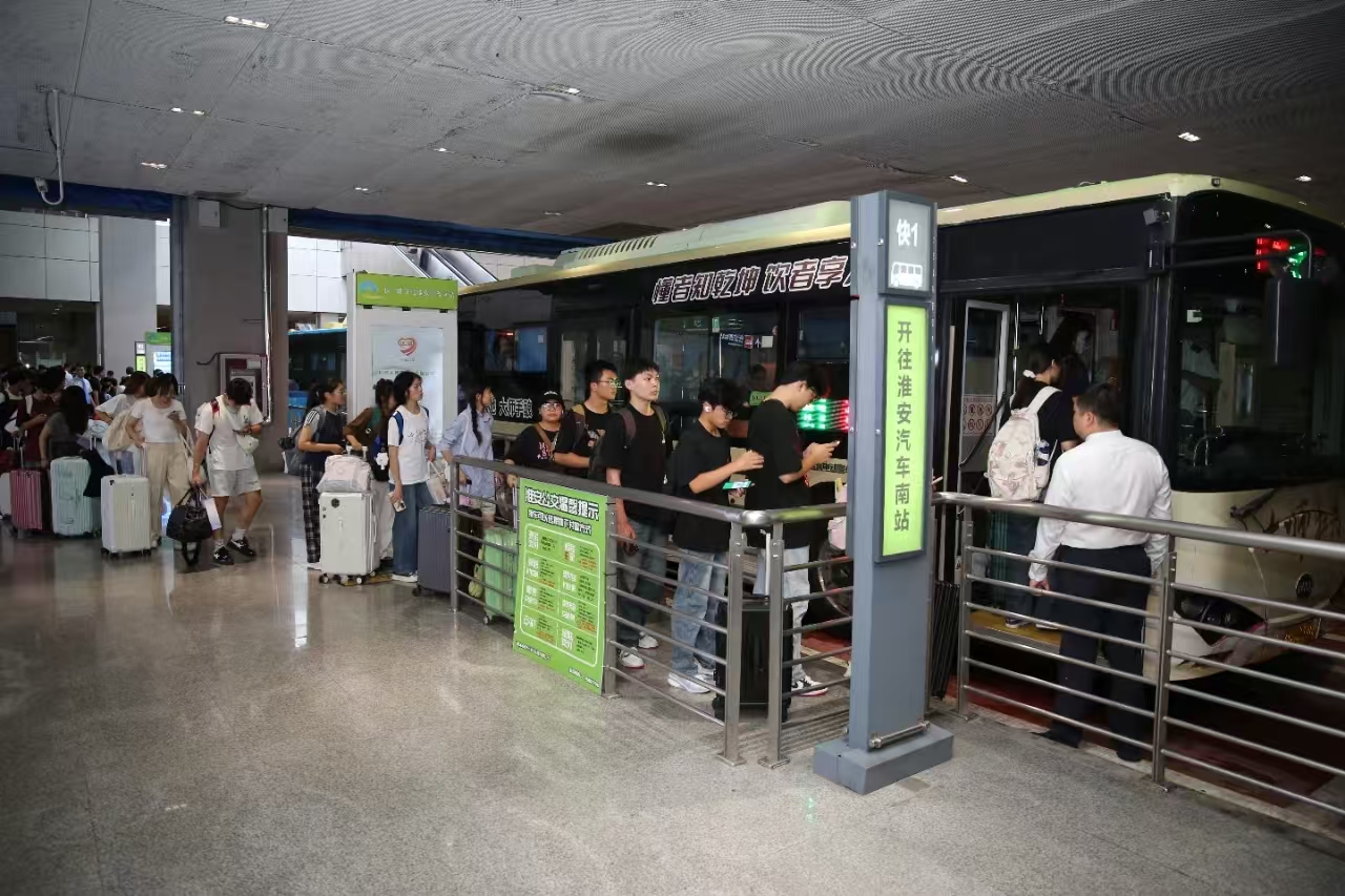 为应对节日期间客流高峰和晚间抵淮旅客,在备足运力的基础上,淮安公交精准研判,结合高铁列次及旅客到离站信息,实时调整公交班次,增加接驳车次,并延长部分线路的服务时间,直至最后一班高铁结束,全力做好“兜底服务”,确保旅客下高铁后能够及时、便捷地换乘公交。