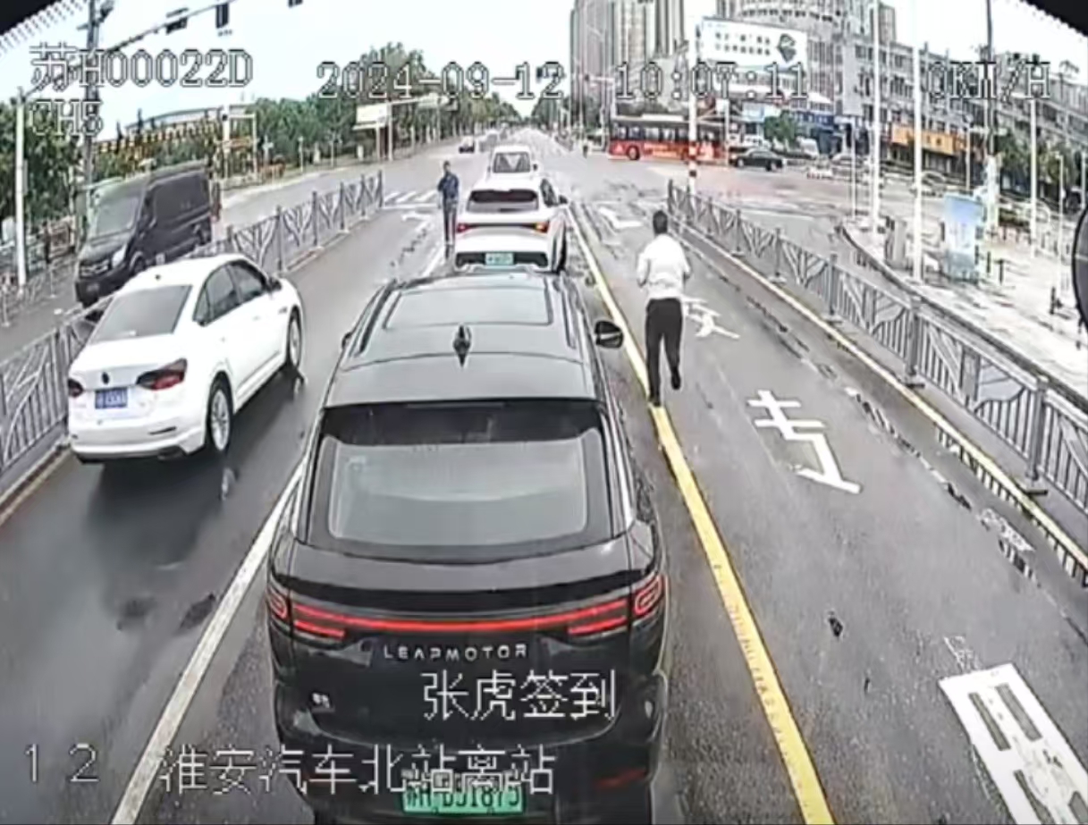 淮安交通:面包车路口抛锚,公交司机暖心相助
