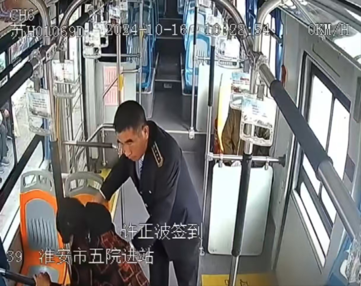当车辆到达丁集站后,见两位老人准备下车,许正波立即提醒他们不要着急,并表示自己将车辆停稳后便会帮助他们。车辆进站后,许正波再次起身来到了老奶奶的身边,小心翼翼地将老奶奶搀扶下了车。面对许正波的热心帮忙,两位老人连声道谢。